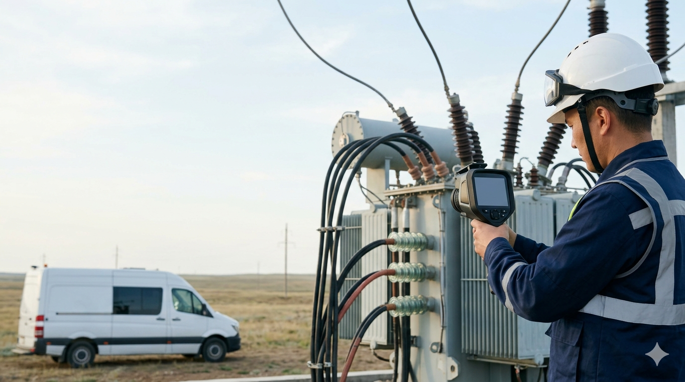 Диагностика трансформаторов и электродвигателей в Алматы без вывода из работы. Вибродиагностика, тепловизионный контроль, прогноз остаточного ресурса.