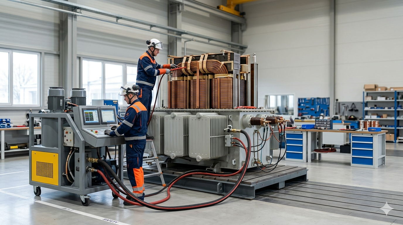 Ремонт силовых трансформаторов 0,4–500 кВ в Алматы: замена обмоток, регенерация масла, испытания и наладка. Выезд на объект по всему Казахстану.